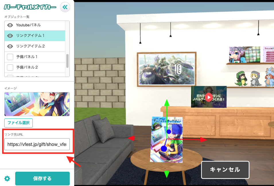 会場でクリックするとギフトを獲得できるアイテムを配置することもできます。