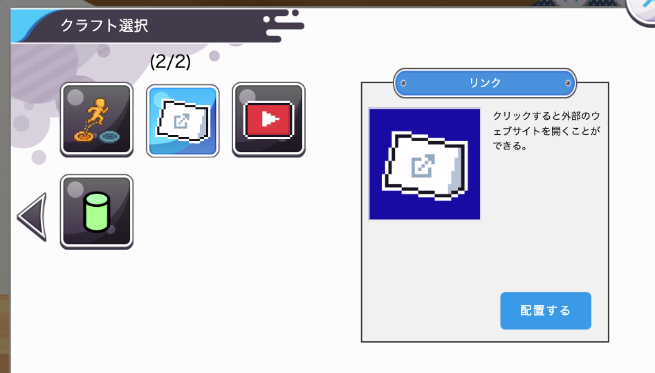 クラフトで配置したい場合は「リンクアイテム」を使用します。
