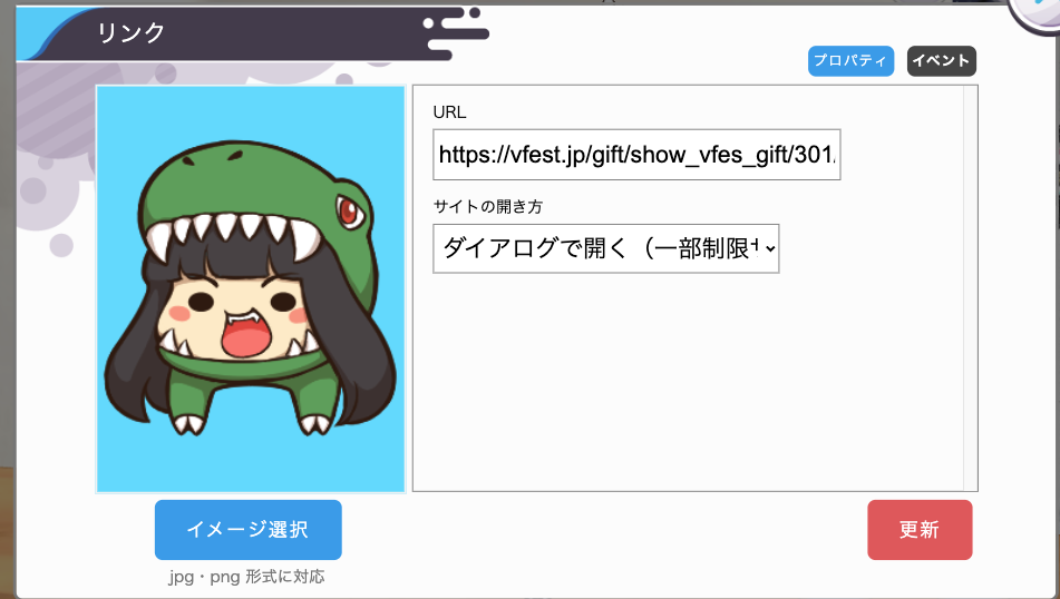 かならずサイトの開き方で「ダイアログで開く」を選択しておく必要があります。