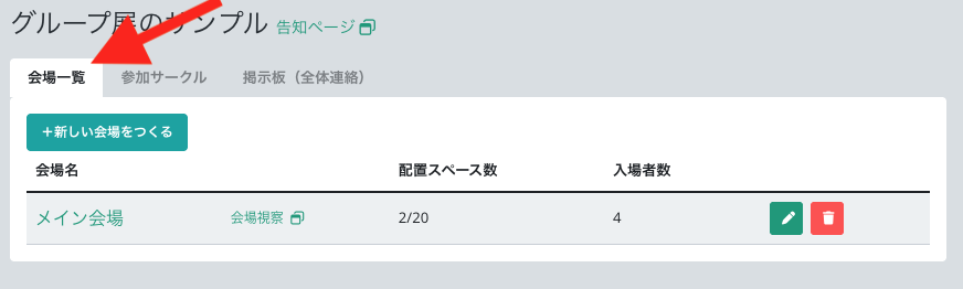 イベントを作成すると、1つの会場が配置されています。